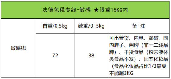 优势:可邮寄普货、内电、弱磁类物品,限重15kg内