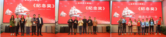 2021年,公司的年会因为受疫情影响,响应政府号召不再长时间大规模聚集,公司研究决定简化流程,所有流程可以省略,但对员工的表彰和颁奖环节必须要进行,因为正是有了一群和公司肩并肩热血奋斗的全体员工,易集达才高歌猛进一路成长为中国集运界的领头羊,公司颁奖范围非常广泛: