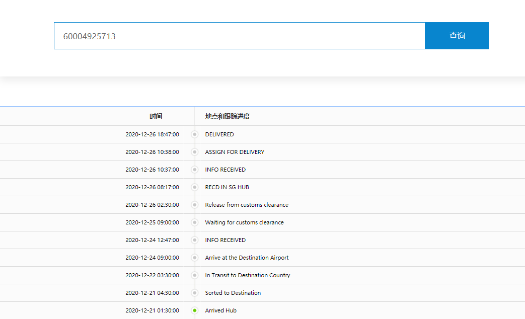 2、亦或者在DHL,Fedex ,UPS,TNT四大商业快递官方网站直接输入单号查询,参考网址如下: