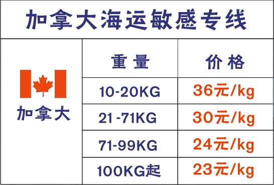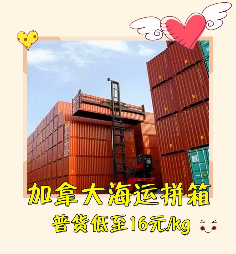 加拿大普货海运拼箱价格是16元/kg (含广州-温哥华仓库自提的所有费用) ,如果客户有原因自提不了,可以选择加邮由 加拿大邮政或联邦快递邮寄其它城市及派送到门。