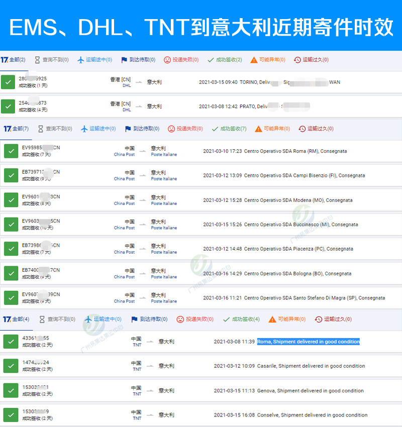 4、意大利包税DHL专线: 只接收不带电不带磁纯普货