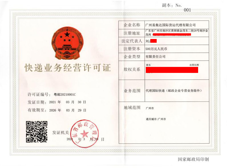 热烈庆祝广州易集达国际货运代理有限公司获得国际快递业务经营许可证