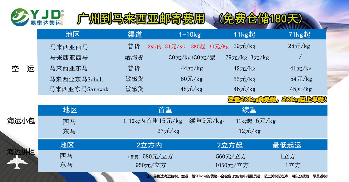 空运西马:2KG内 31元/KG(普货2kg起收,不足2kg,按2kg计费!)