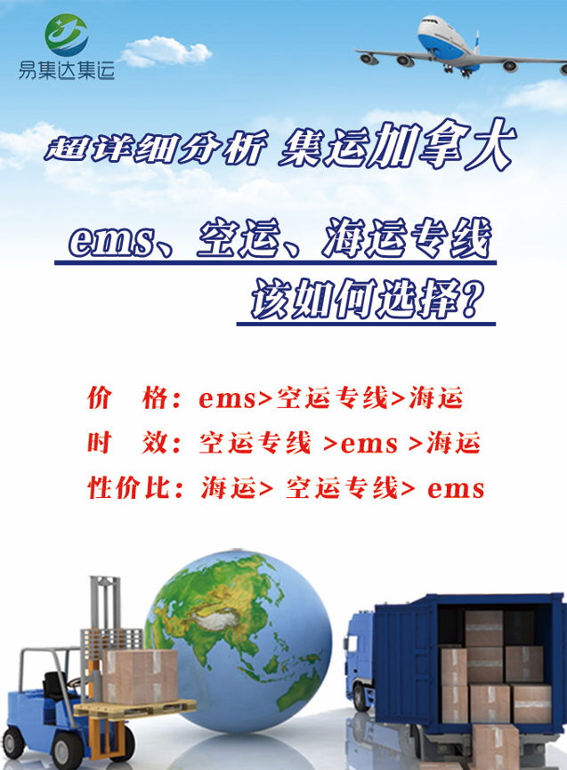 集运加拿大,我们有以下几个渠道:ems、空运专线、海运双清包税专线