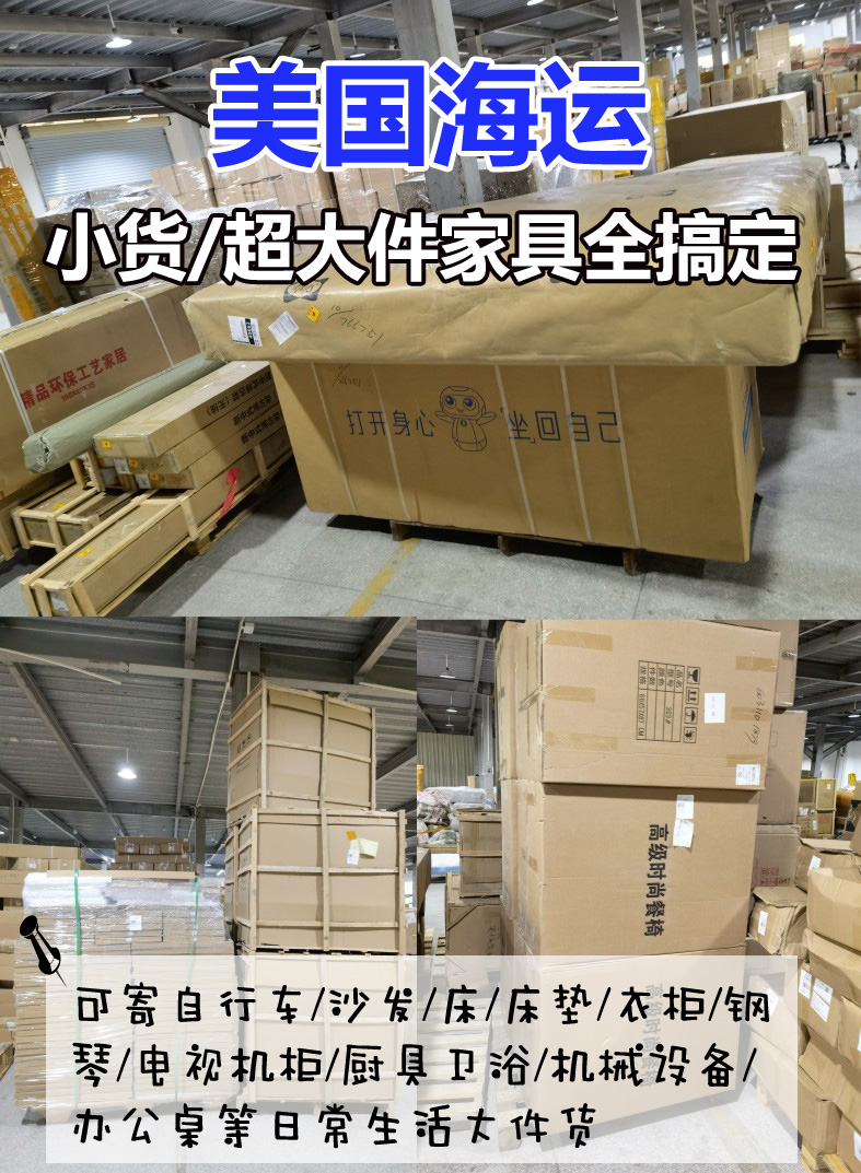 除邮寄小包裹外,还有专业的大货/超大件海卡专线 ,双清包含税目的地卡车派送到门,可寄自行车/沙发/床/床垫/衣柜/钢琴/电视机柜/厨具卫浴/机械设备/办公桌等日常生活大件货