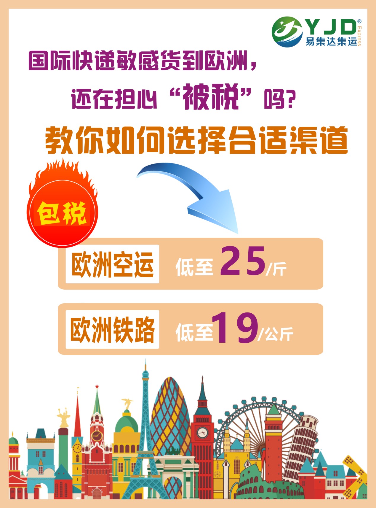 总上述,欧洲国家更建议大家走双清包税渠道(欧洲空派,铁路,海派及超大件渠道),可以解决清关被税问题,而且可以寄普货,食品,带电带磁类敏感货,选择更多样化。